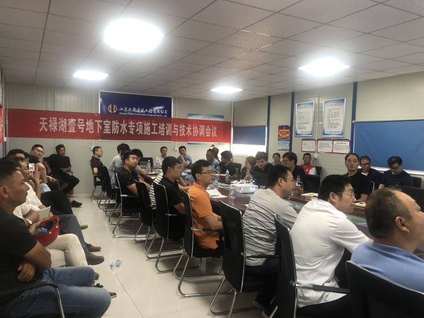 華盛公司召開天祿湖壹號地下室防水專項施工培訓與技術(shù)協(xié)調(diào)會議